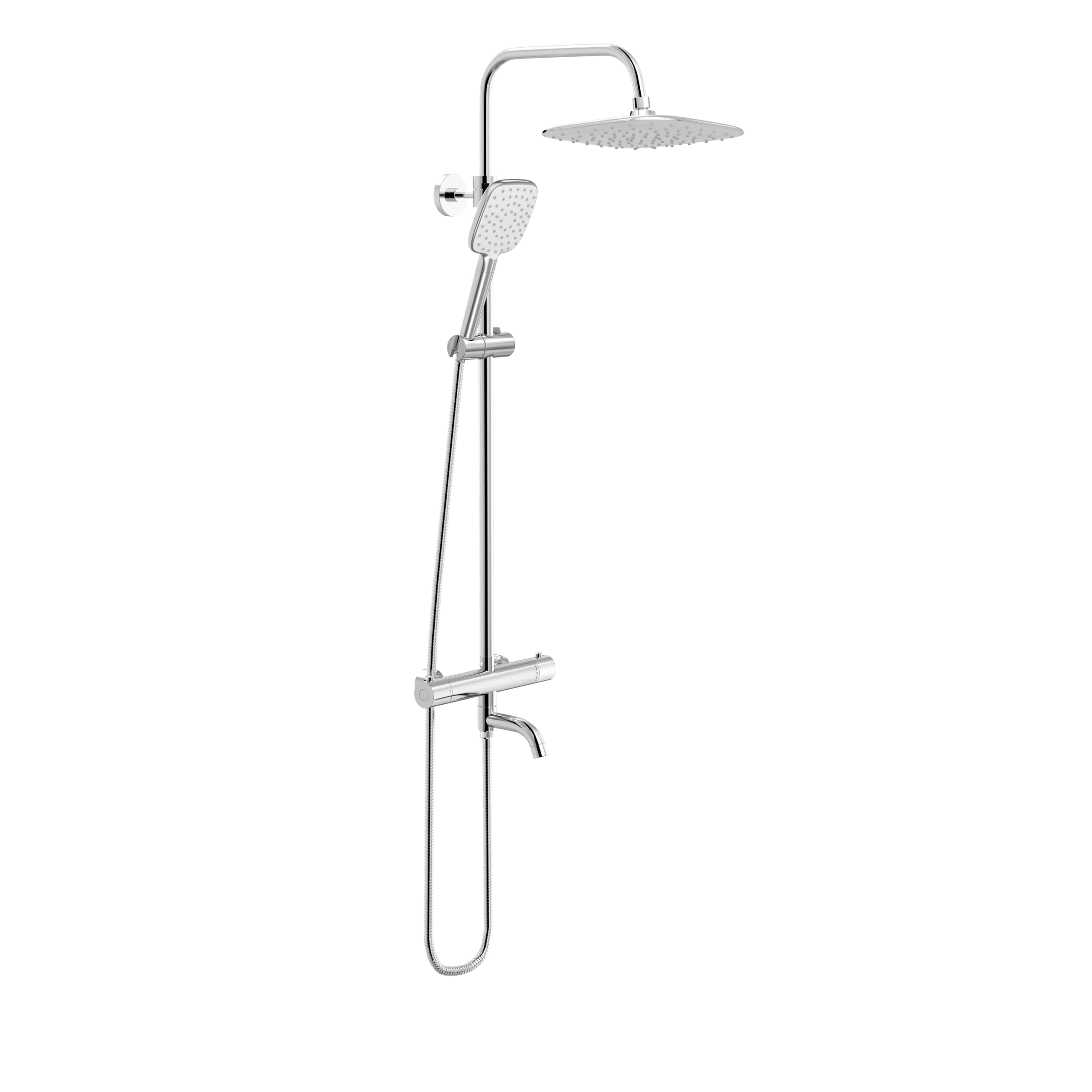 • 150 cm Pirinç uç, Paslanmaz çelik çift kilitli krom duş hortumu• Ø 22 / Ø 19 mm 304 paslanmaz çelik ayarlanabilir krom duş borusu• 115×120 mm El duşu – 1 Fonksiyonlu• 240×240 mm Duş başlığı/ Tepe duşu• Akıllı yön değiştirici musluğa sahip termostatik pirinç musluk•Termostatik gagalı batarya8 Adet