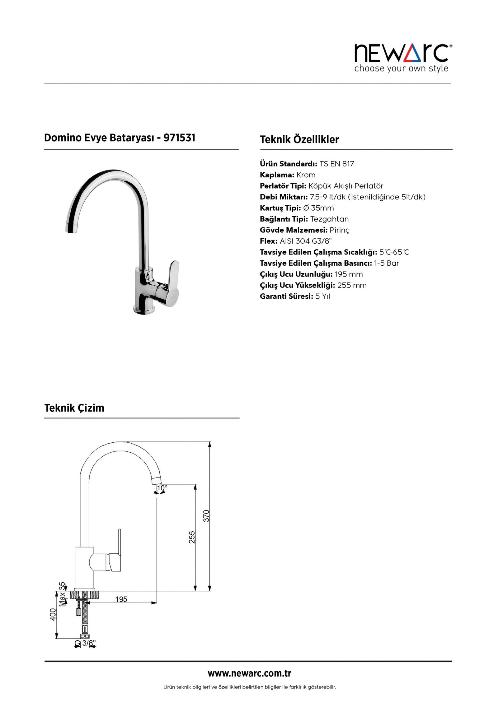 Domino Evye Bataryası- Evye bataryası- Köpük akışlı perlatör bu özellikleriyle evinizde şık tasarımıyla fark yaratarak konforu en üst seviyeye taşıyacak.