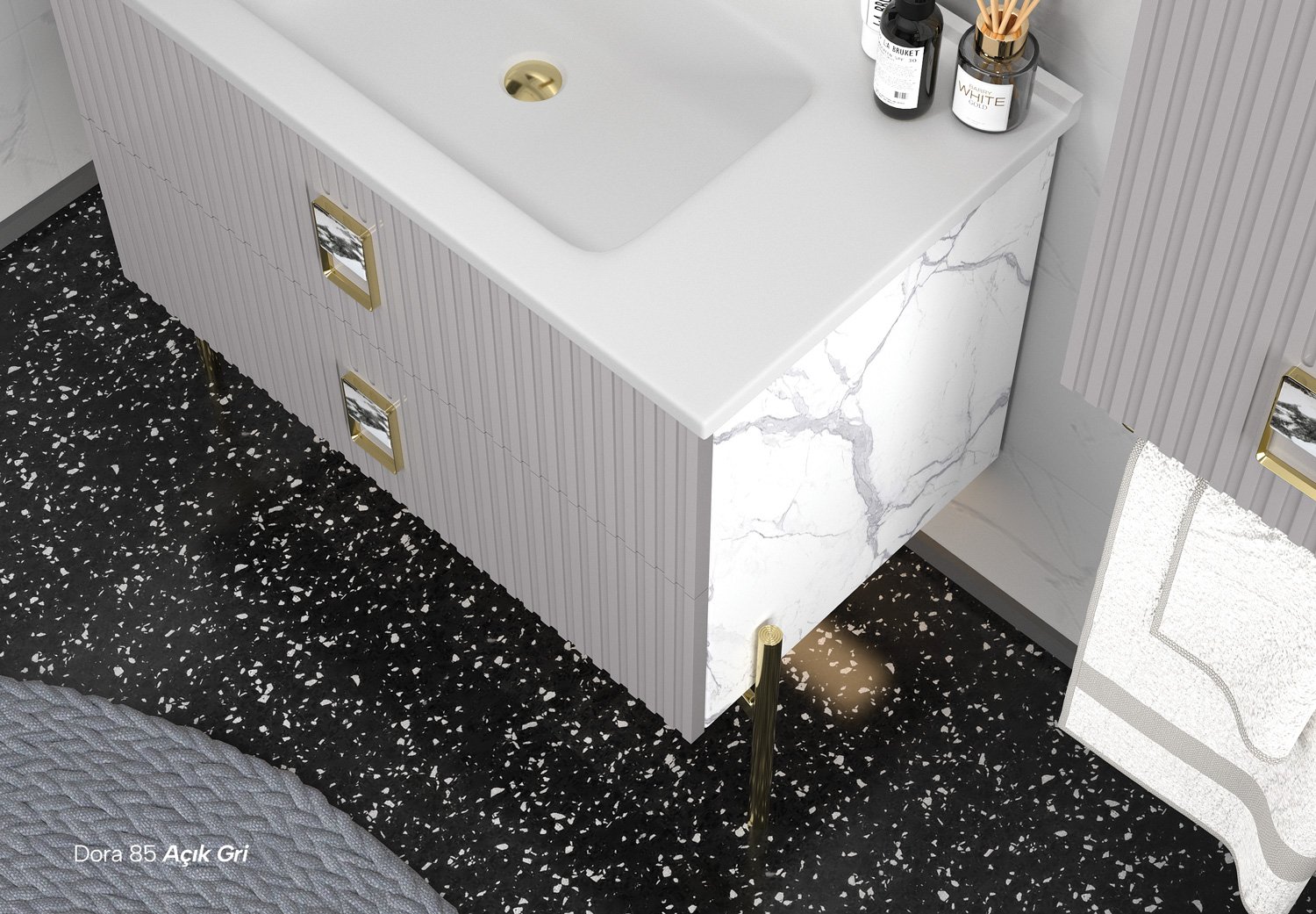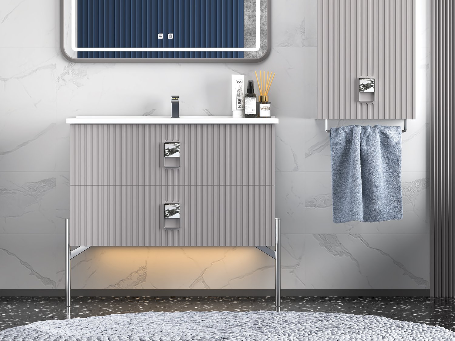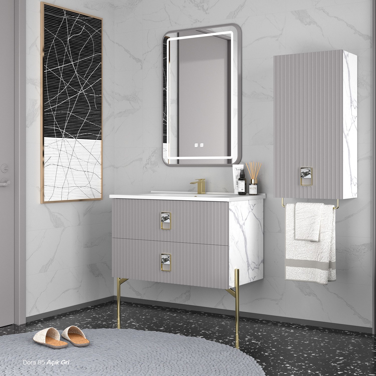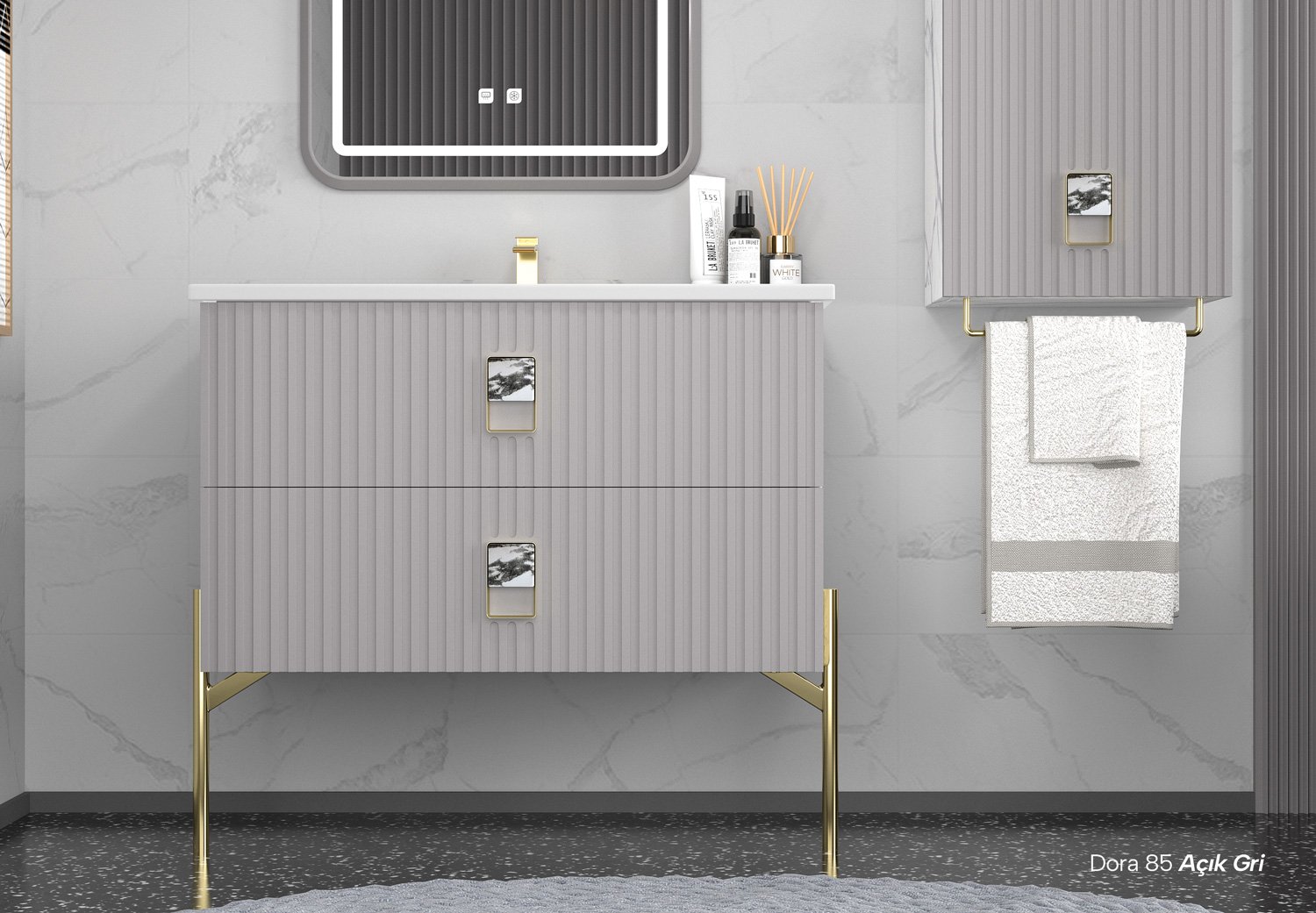 Etajerli Lavabo Dokunmatik Ledli Ayna (Lake) Havluluklu Boy Dolap (Lake)