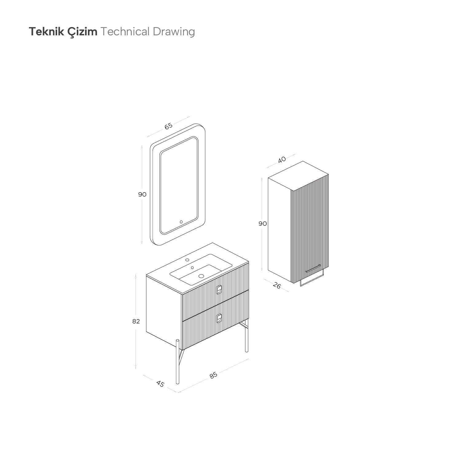Yükseklik: Alt Modül: 80 cm / Ayna: 90 cm / Blok: 90 cm