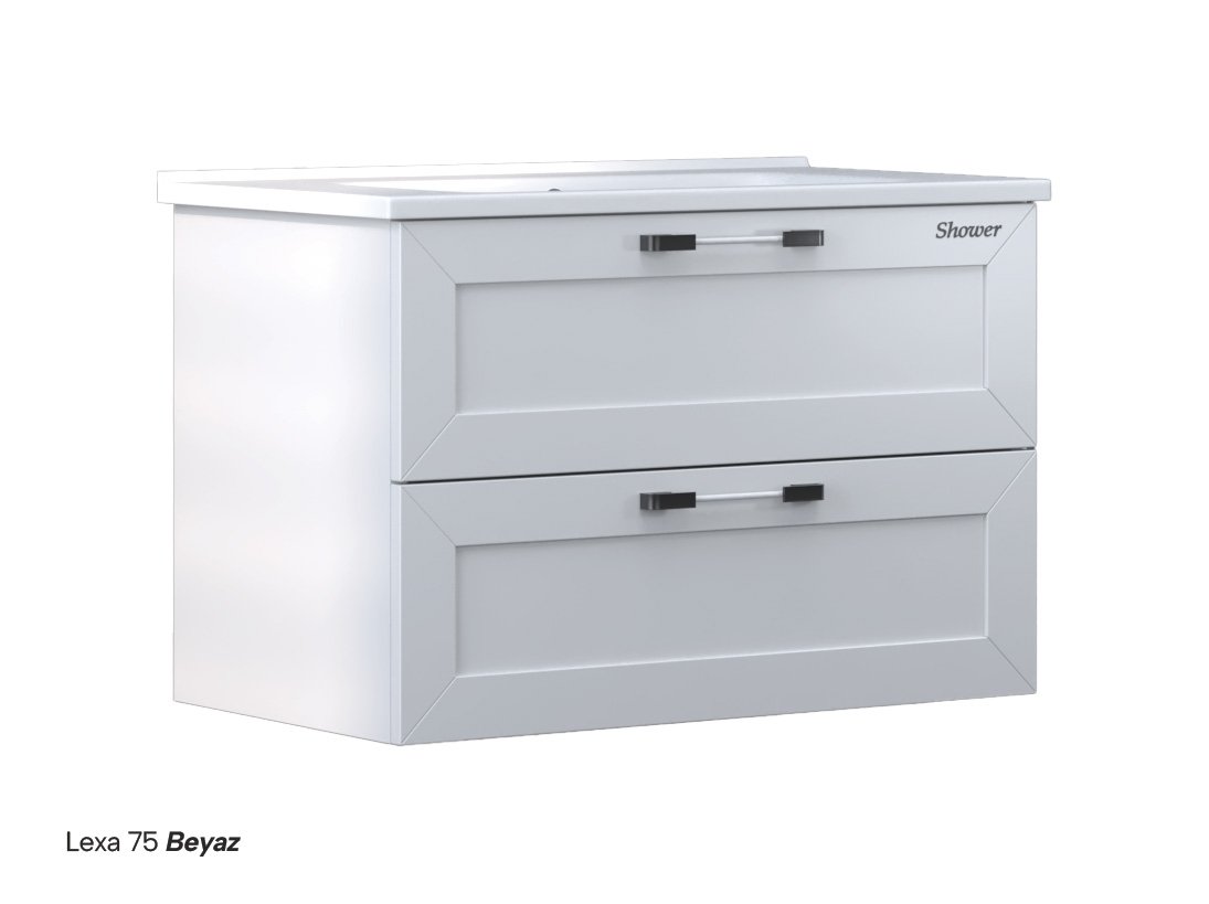 Etajerli Lavabo Mdf Lam Gövde, Mat Lake Kapak Aynalı Üst Modül Çift Kapaklı Boy Dolap