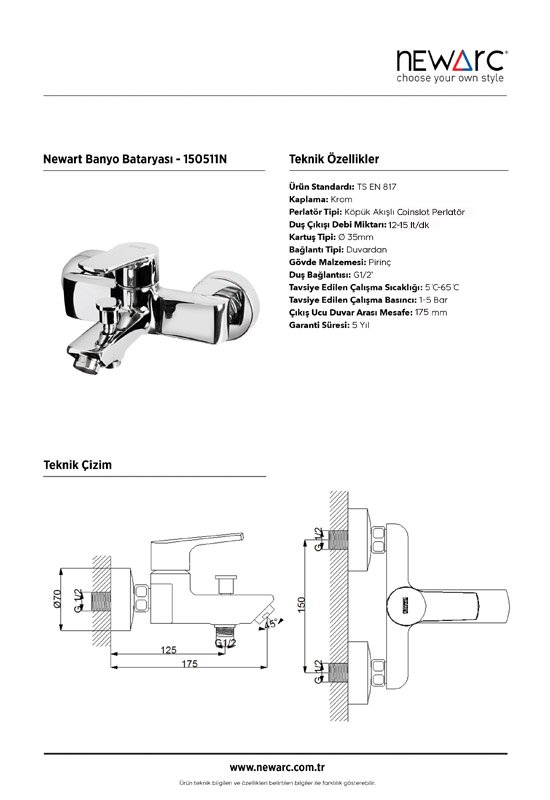 Newart Banyo Bataryası- Banyo bataryası- Köpük akışlı perlatör- Kilitlemeli duş yönlendiricisi özellikleriyle banyonuzda şık tasarımıyla fark yaratacak.