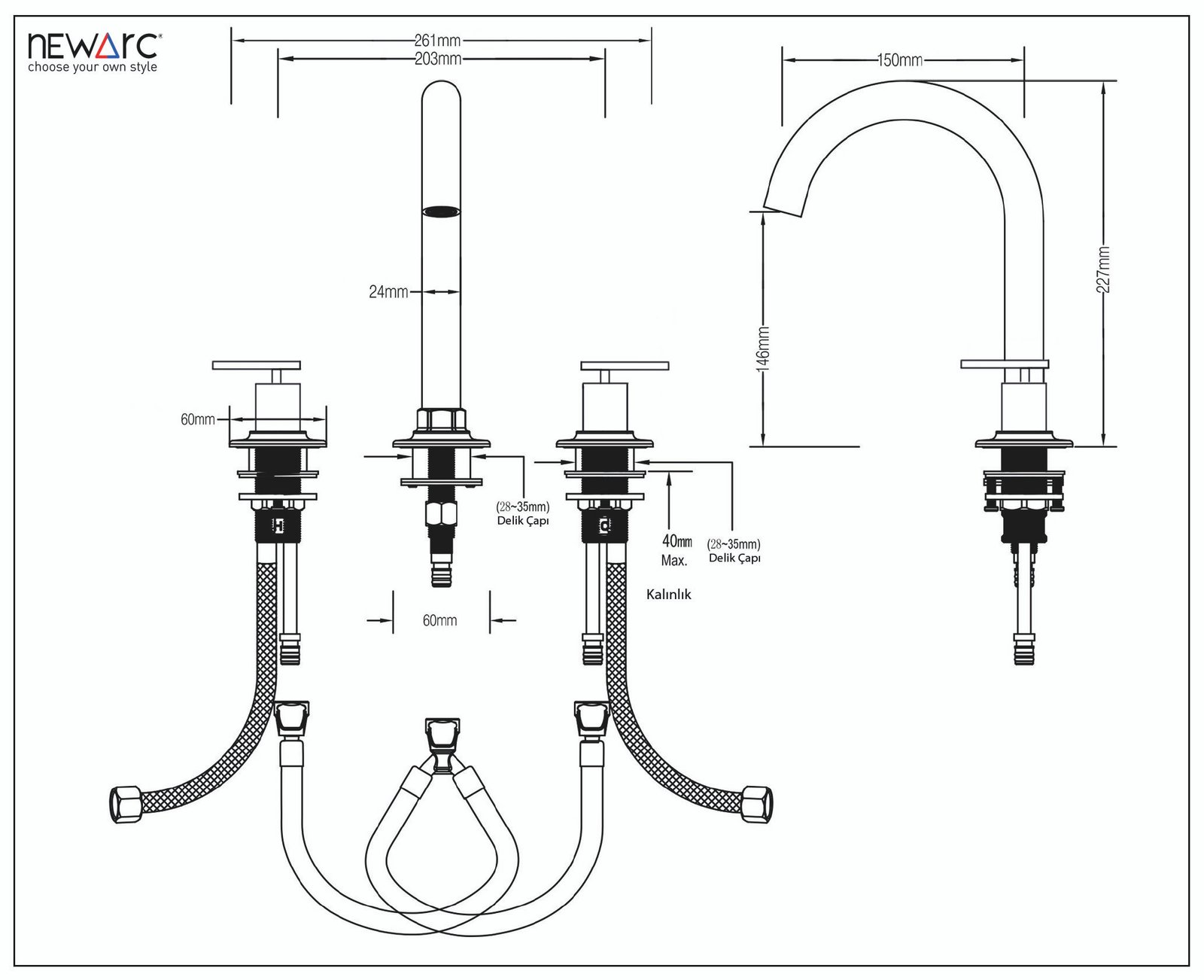 Newart Üç Delikli Lavabo Bataryası Siyah – 150561B