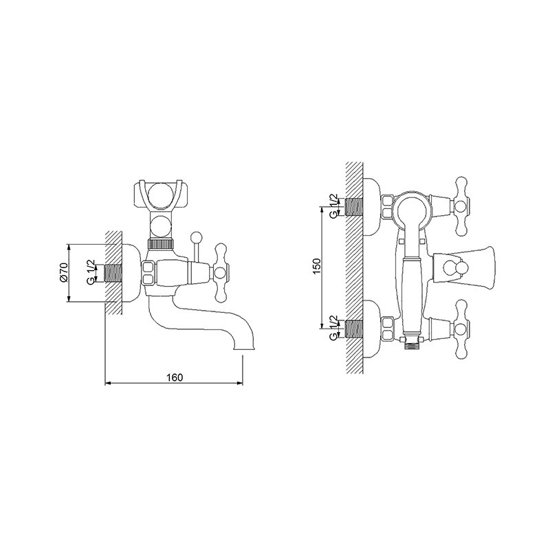 Nostalgic Banyo Bataryası- Banyo bataryası- El duşu ve hareketli mafsalı dahildir- Çevirmeli duş yönlendiricisi- 90° Seramik salmastralı.