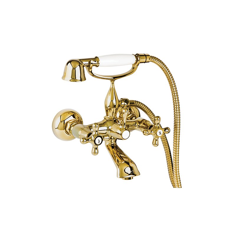 Nostalgic Banyo Bataryası Altın- Altın banyo bataryası- El duşu ve haeketli mafsalı dahildir- Çevirmeli duş yönlendiricisi- 90° Seramik salmastralı.