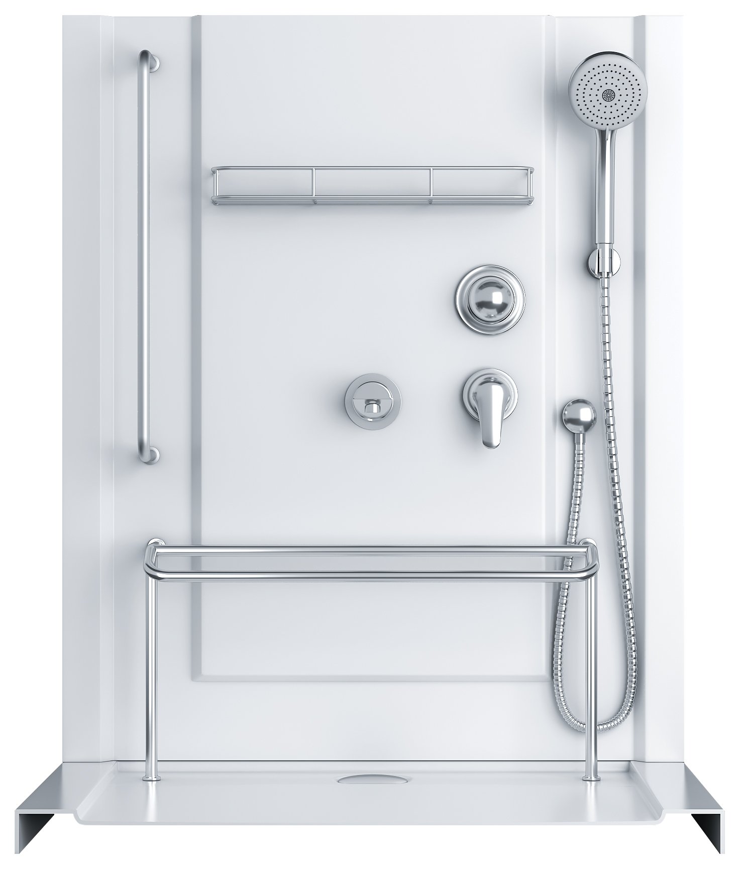 Akrilik Tekne | Akrilik Duvar | Krom Kapaklı Tekne Sifonu | Aç / Kapa Batarya | Tutunma Barı | Ayak Desteği | Raf | El Duşu | Gaga.